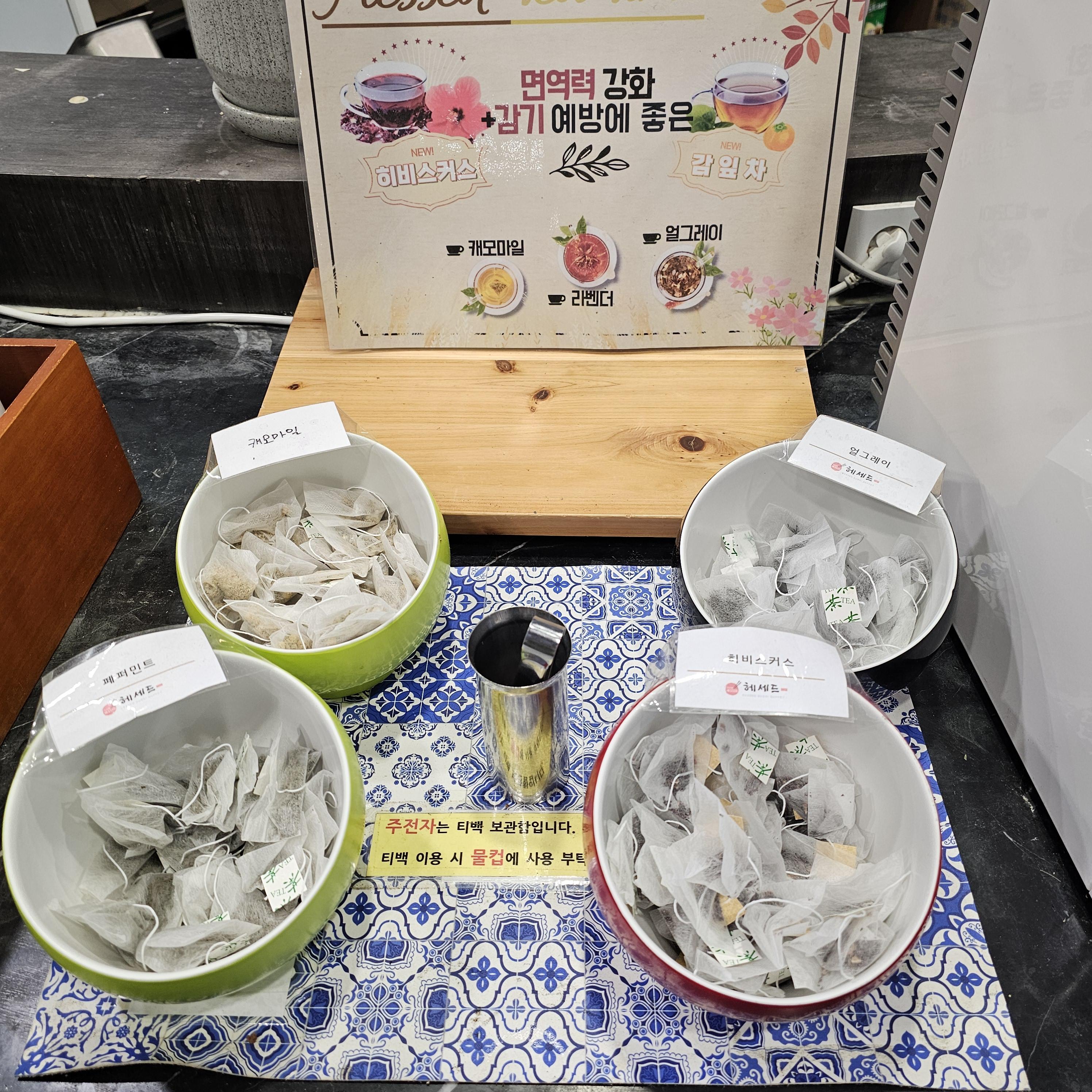 제로 음료수와 각종 차, 두 가지맛의 아이스크림까지 다 먹고 후식까지 준비되어있어서 너무 좋았습니다!