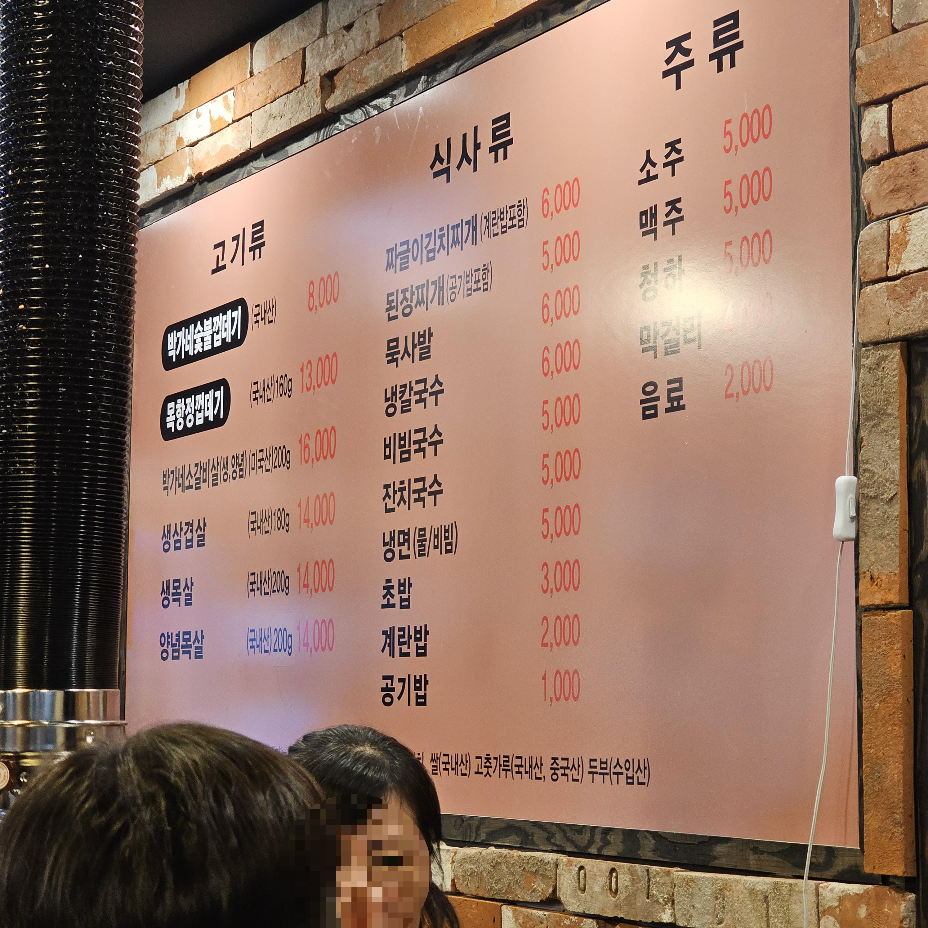 저는 2명이서 가서 소갈비 2인분, 삼겹살1인분, 껍데기 1인분, 국수까지 시켜먹었는데요!