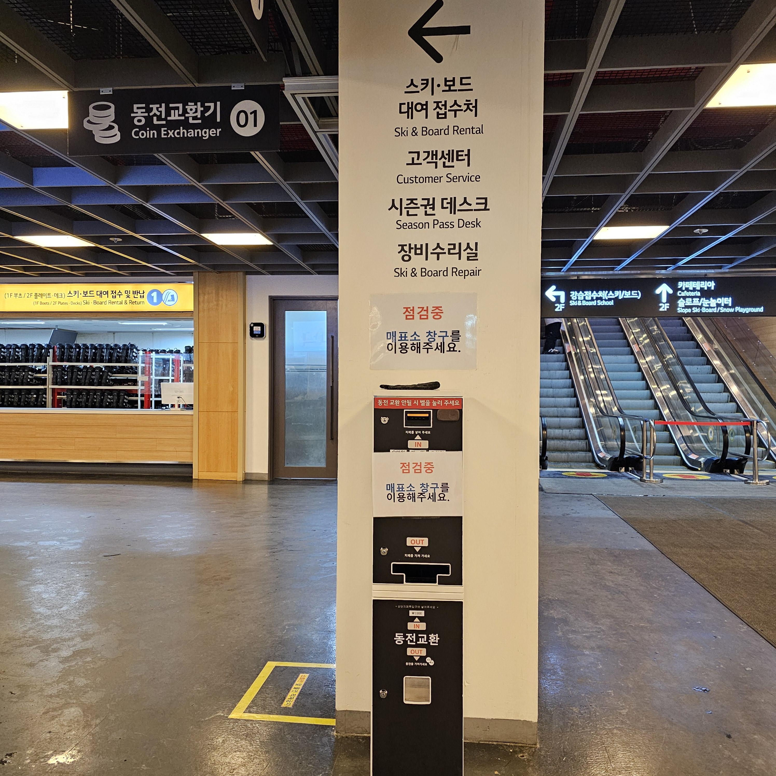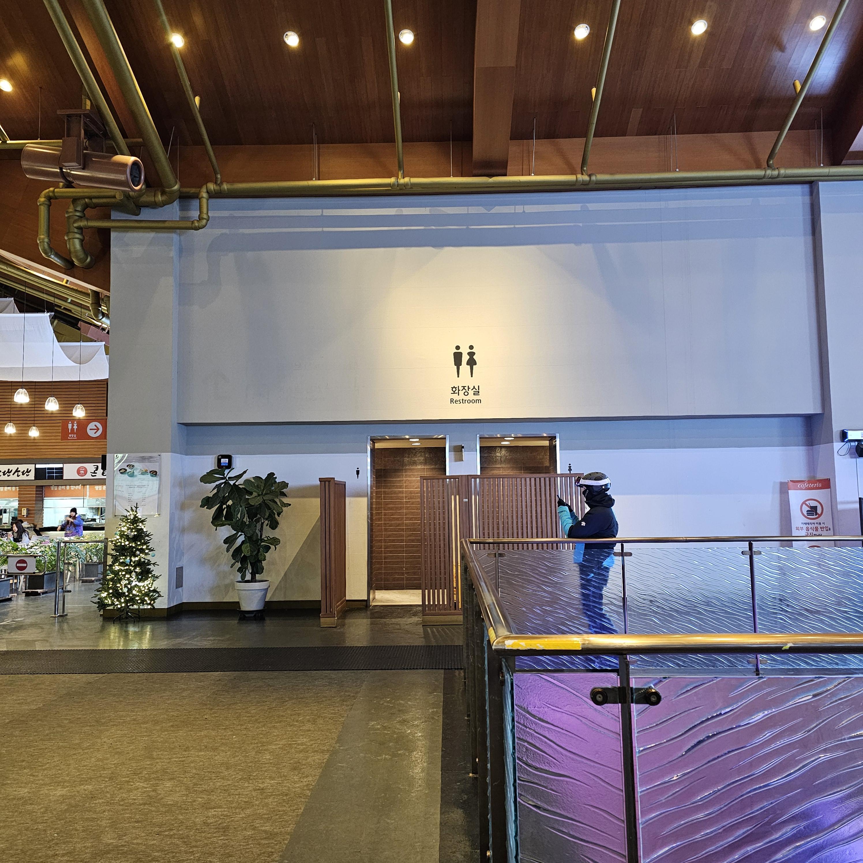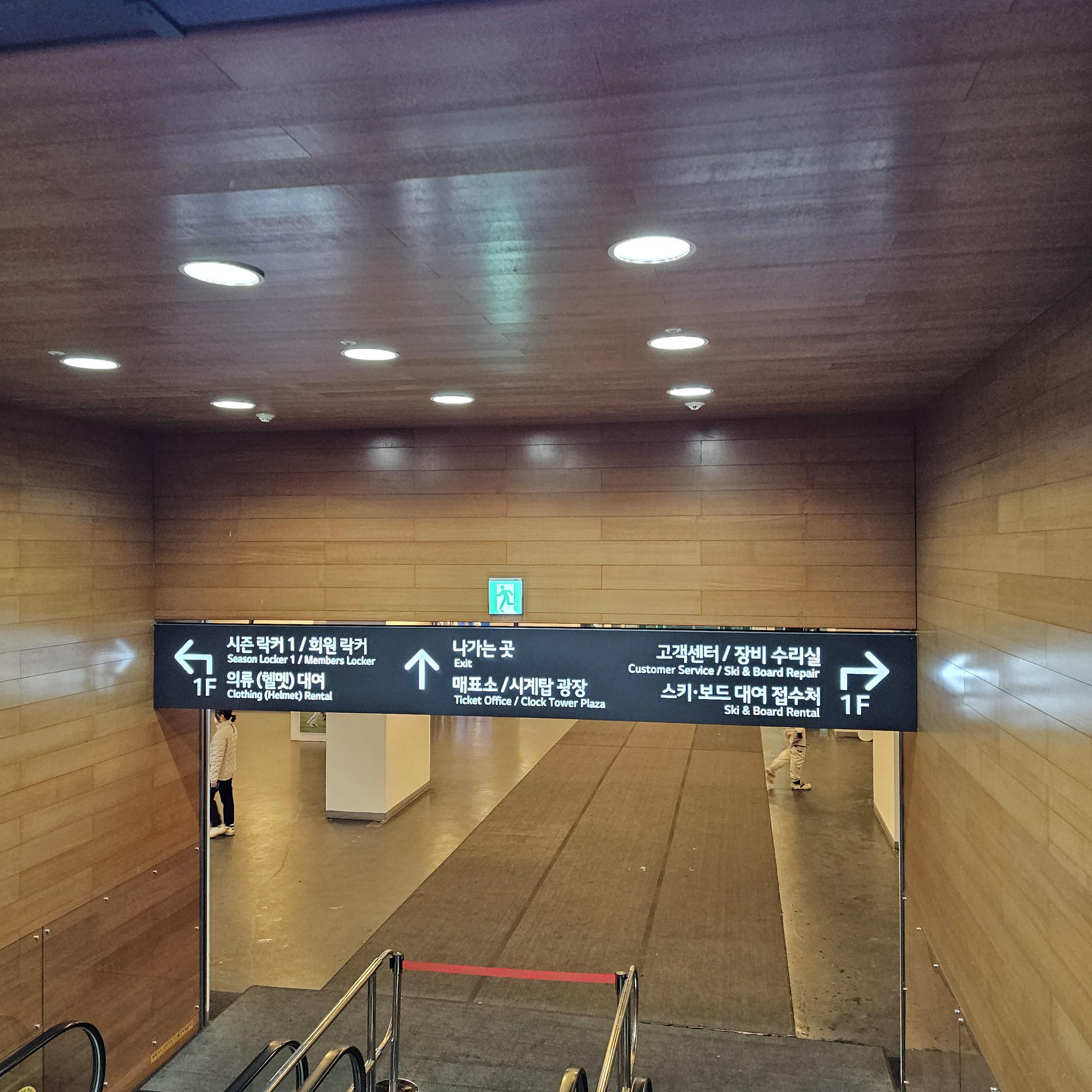 1층에는 락커룸, 화장실, 고객센터/장비 수리실, 스키/보드 대여 접수처가 있습니다!