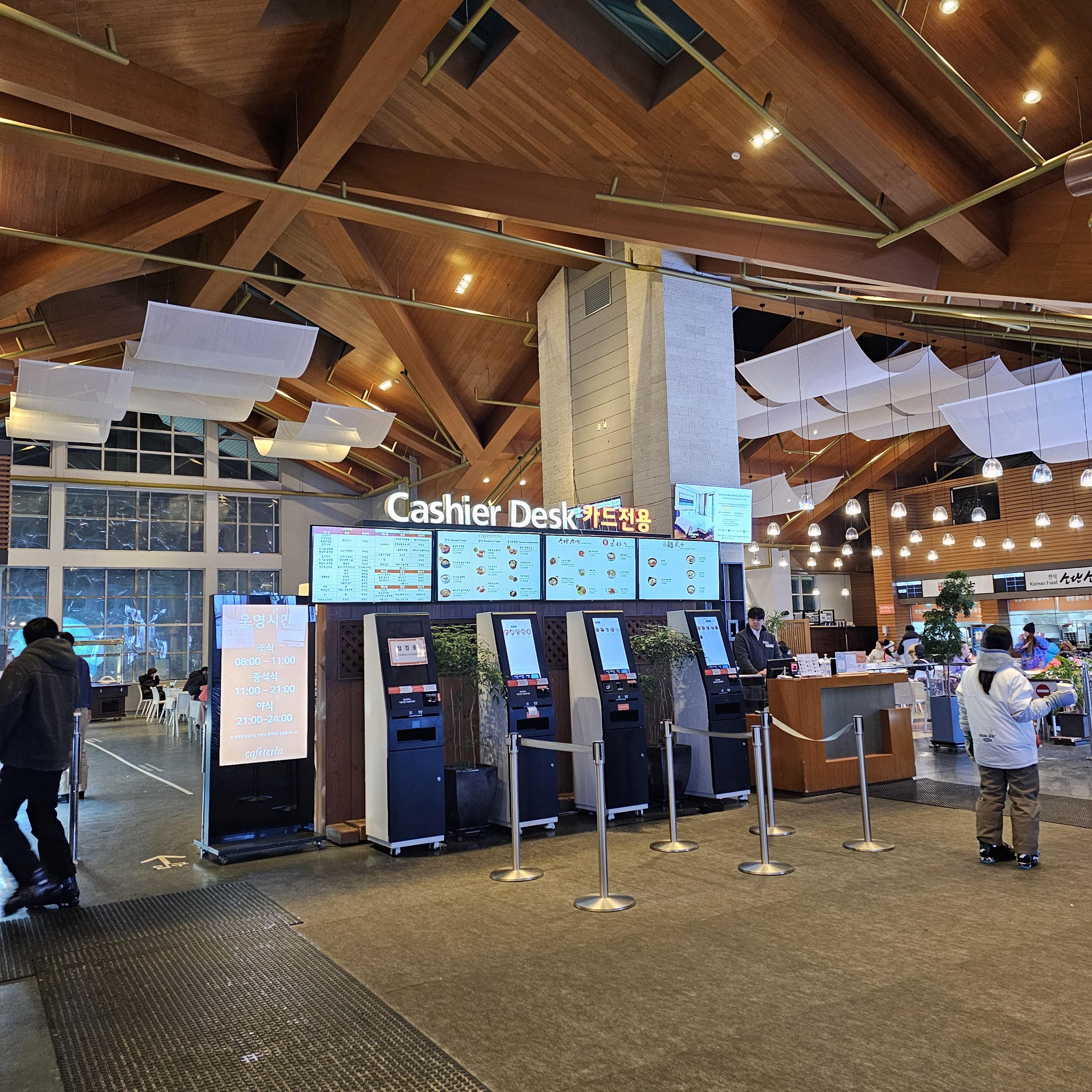 스키하우스 2층에는 외부, 내부 식당가가 있고 다양한 메뉴를 판매하고 있습니다