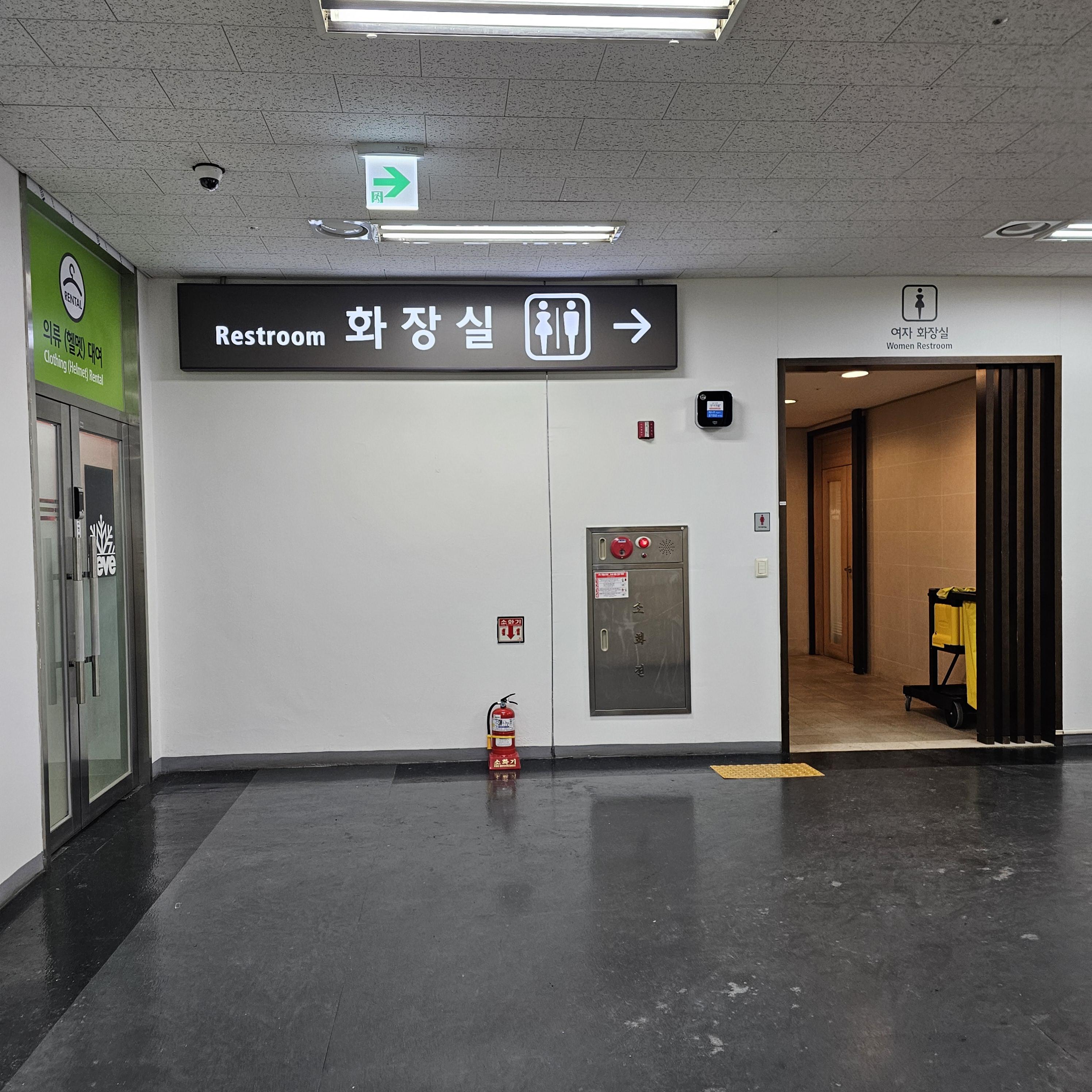 1층에 있는 락커룸 방향으로 쭉 들어가면 화장실이 나옵니다!