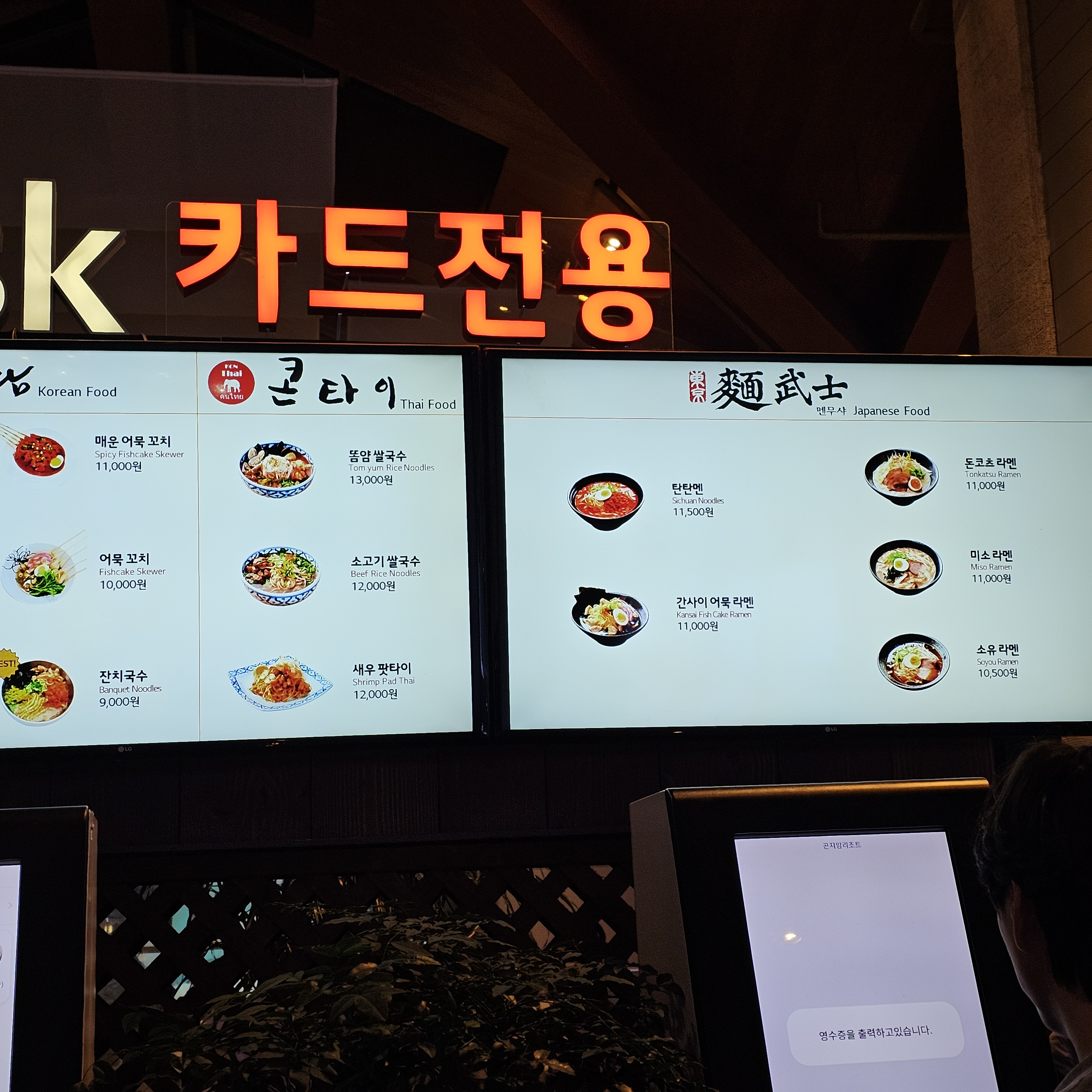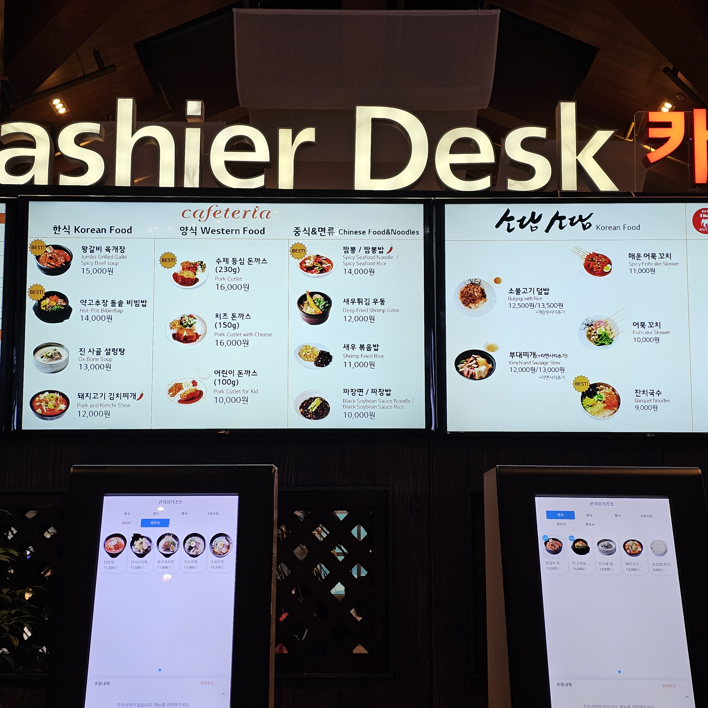 내부에는 한식, 양식, 중식, 태국음식, 일식이 있습니다!