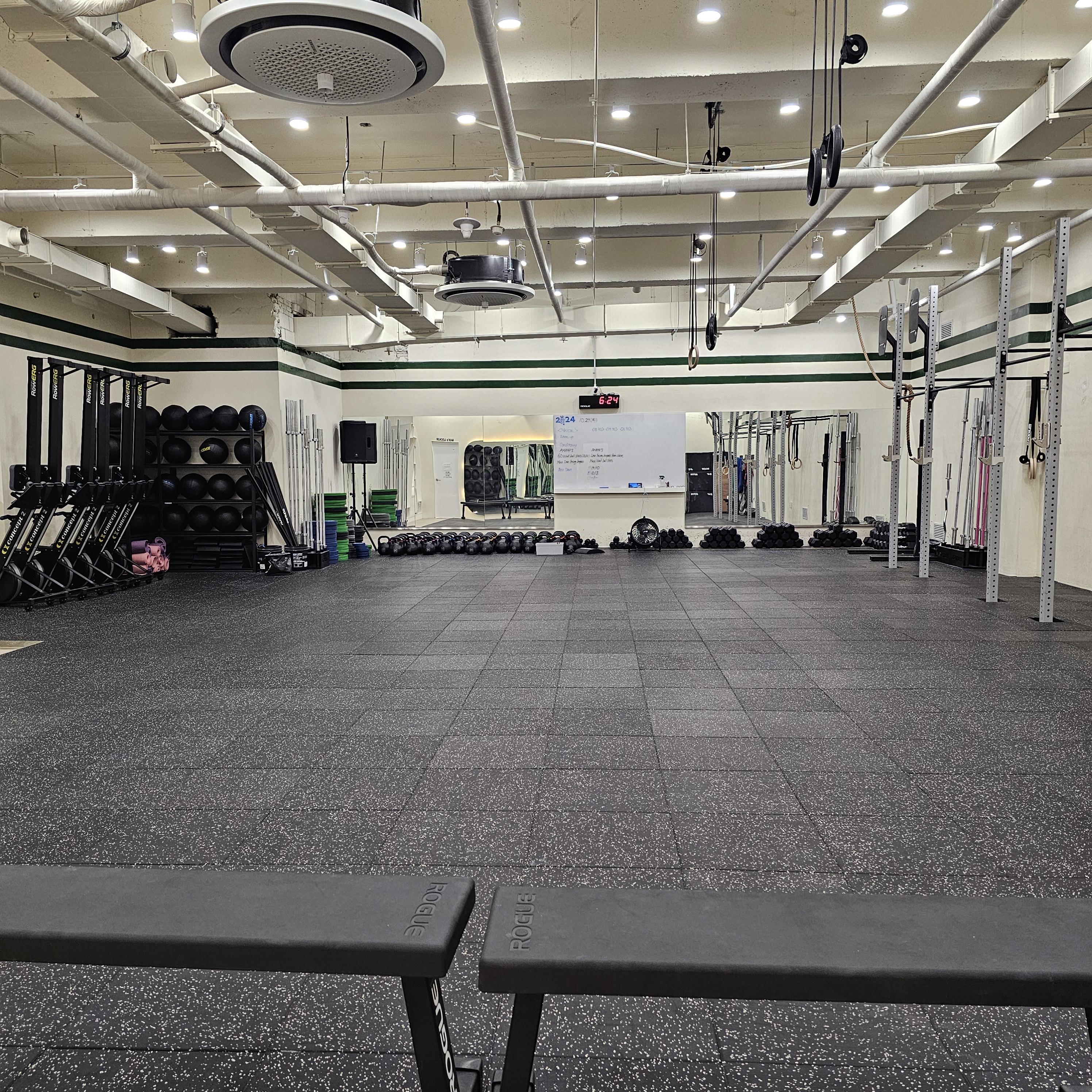 엘리베이터 내리면 바로 입구가 보입니다! 신관이라 그런지 화사하고 밝은 분위기의 크로스핏장인 거 같습니다